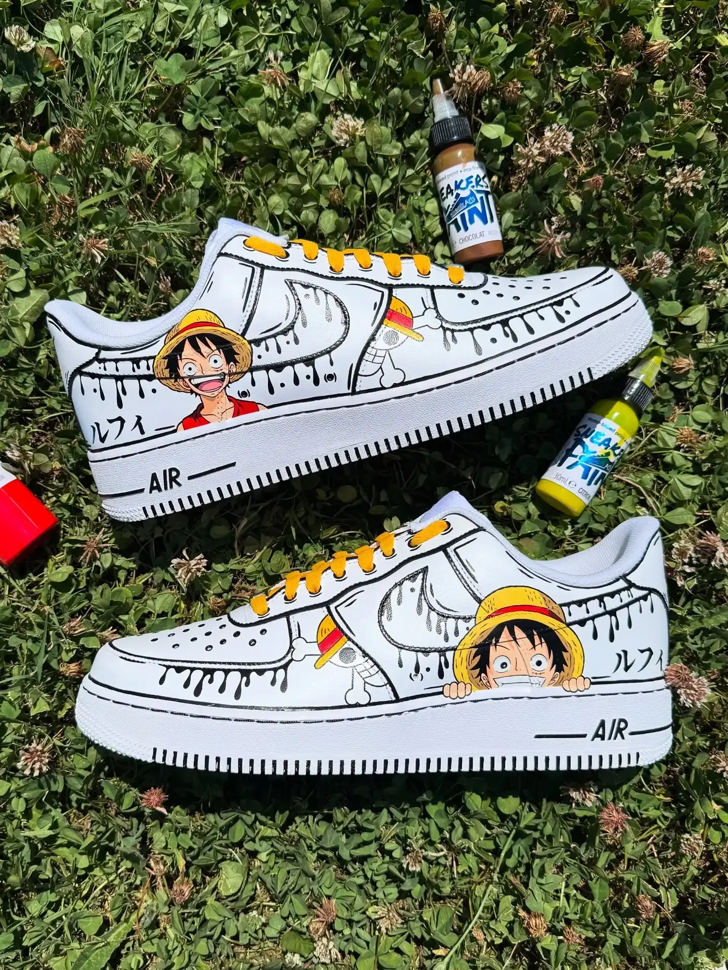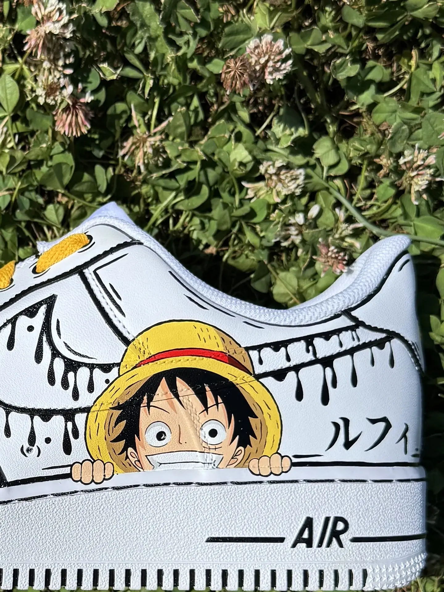Step into the Grand Line with style. These Custom One Piece Luffy Air Force 1 sneakers are hand-painted with vibrant anime art inspired by Monkey D. Luffy — perfect for fans who want to wear their fandom loud and proud.