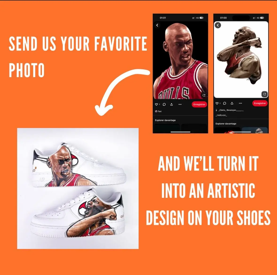 Express your style like never before with JadoreArt’s fully customizable sneakers. Whether it’s your favorite celebrity, anime character, portrait, or art concept, our artists will hand-paint your chosen image directly onto your sneakers with stunning precision.